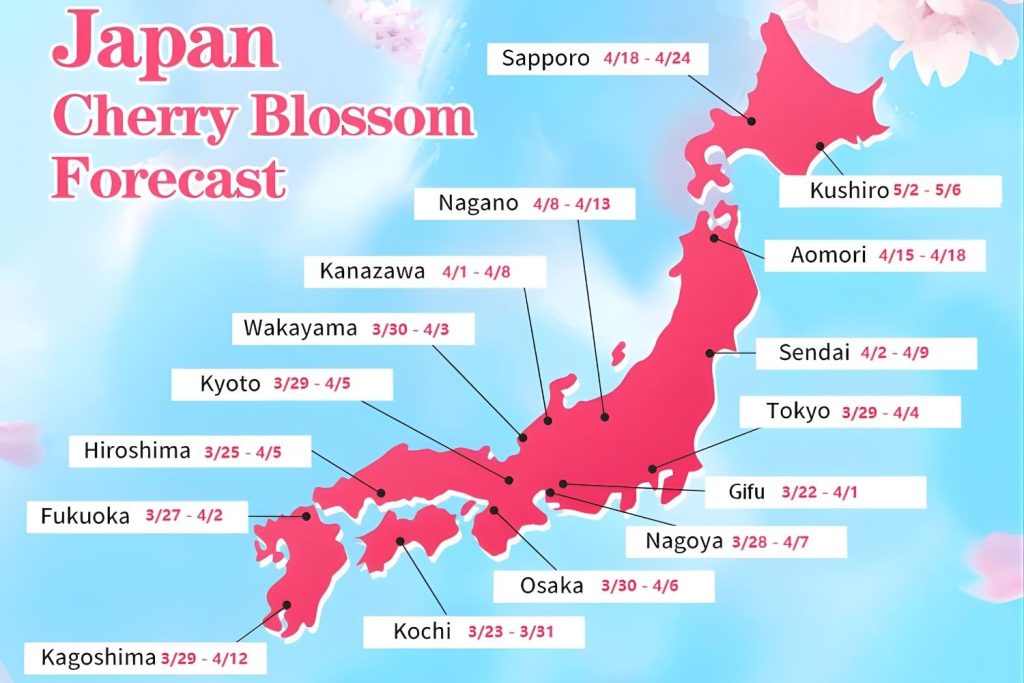 The Japan cherry blossom season 2026 is anticipated to follow the classic “sakura front” progression, starting in the south of the archipelago and moving northward over the course of spring. Based on early projections and historical trends, here’s a breakdown of when cherry blossoms are likely to bloom across major regions: