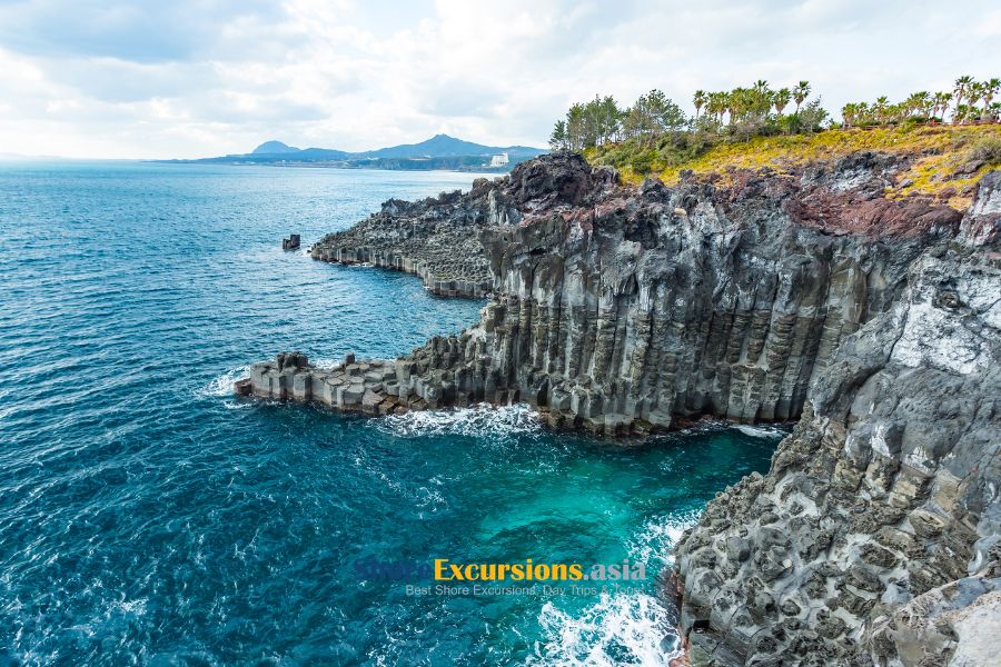 Highlights: Yakcheonsa Temple, Daepo Jusangjeolli Cliff, Cheonjeyeon Falls – Seonimgyo Bridge, Seogwipo Olle Market