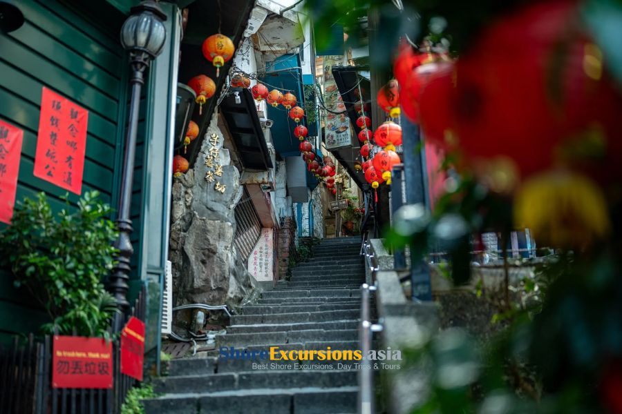 Continue to Jiufen, a charming hillside town once known for its gold mining industry. Wander through narrow alleyways filled with traditional shops, local street food stalls, and atmospheric teahouses. Admire the red lanterns and scenic views overlooking the mountains and sea. Jiufen’s nostalgic ambiance is said to have inspired the setting of the beloved Studio Ghibli film Spirited Away.